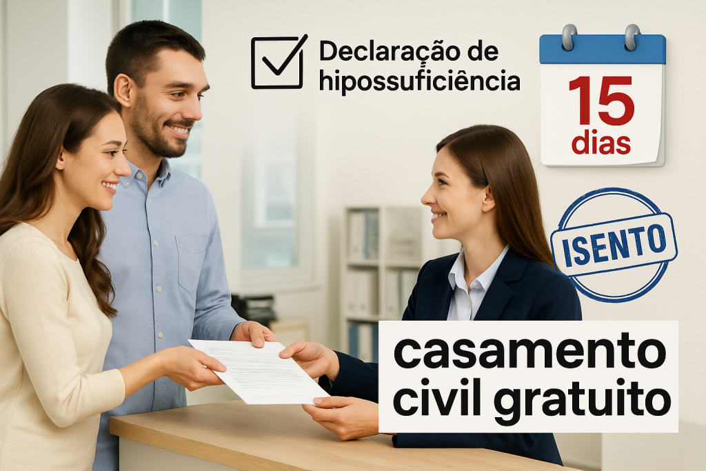 • Isenção total de taxas (para hipossuficientes): quem declarar pobreza tem isenção de selos, emolumentos e custas na habilitação, no registro e na primeira certidão. A declaração é simples e feita sob as penas da lei.